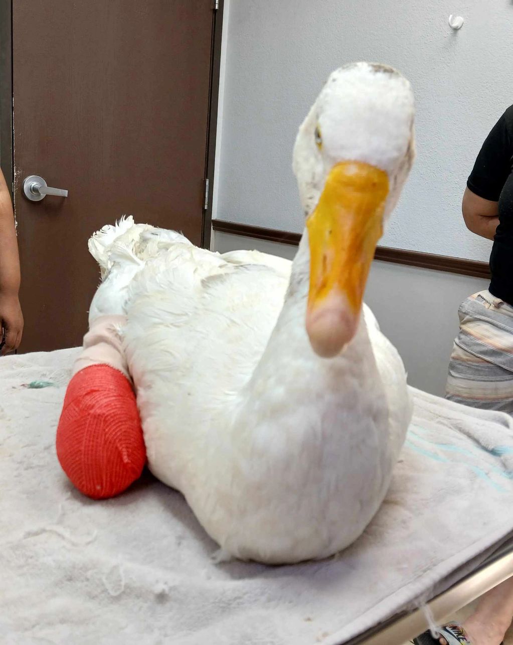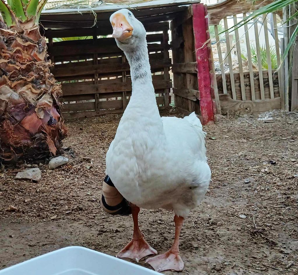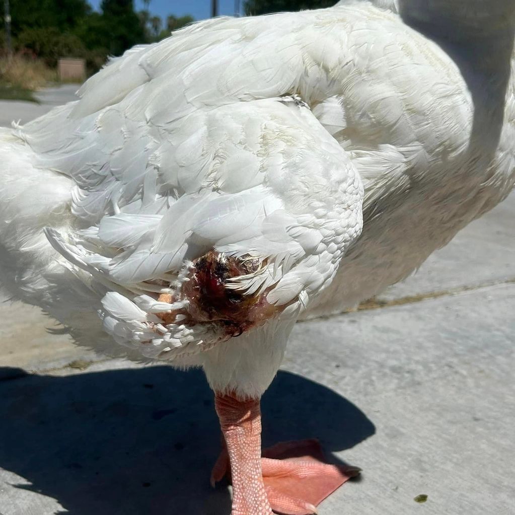 Stewart was found at the end of June 2024 at Lorenzi Park in Las Vegas, NV with a large mass on his wing. His pictures were posted on social media which prompted a local rescuer to go capture him. She took him to a vet who gave him antibiotics and discussed possibly amputating his wing.